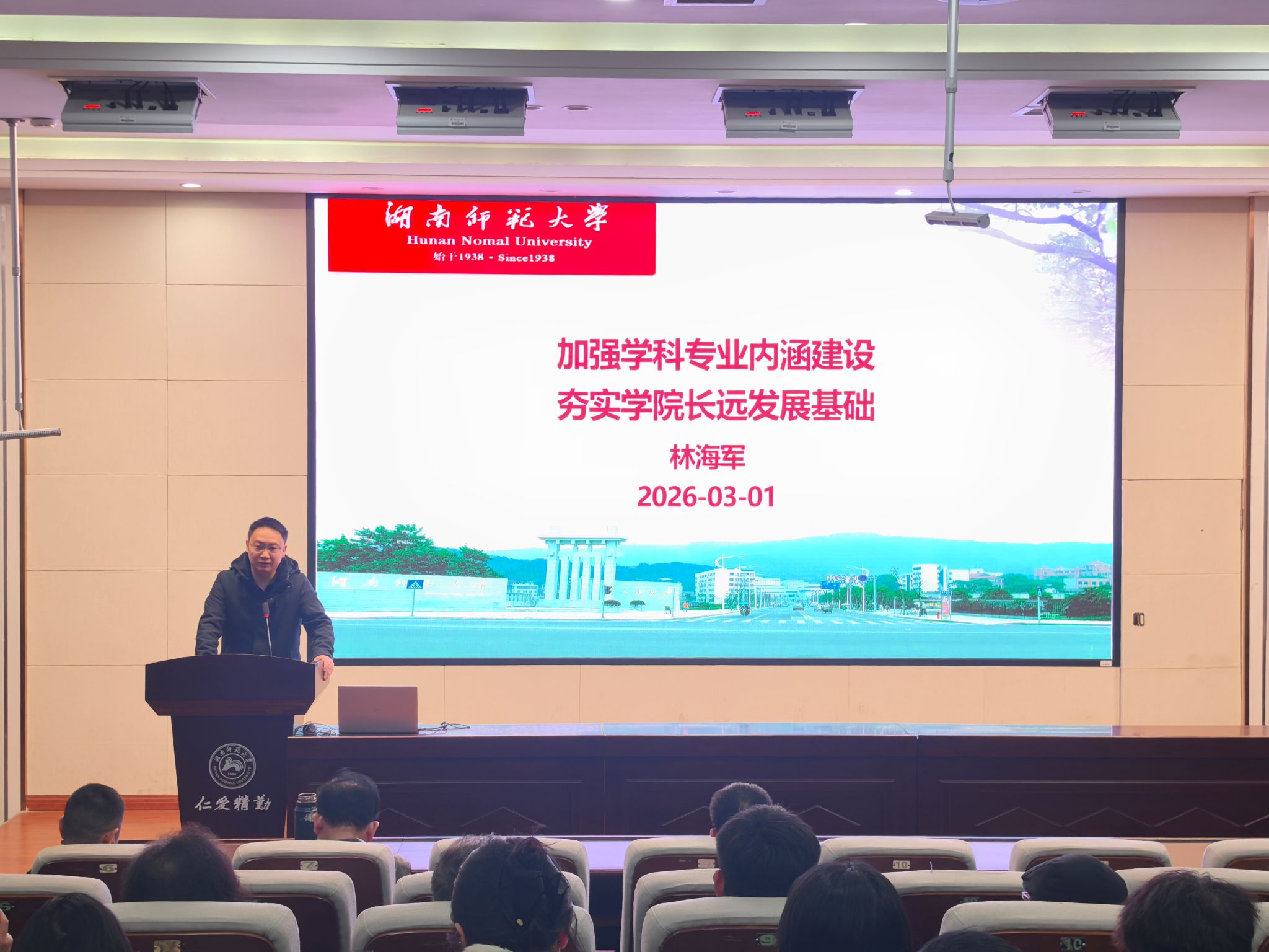 院长林海军作学院工作报告。他系统总结了学院“十四五”期间取得的工作成绩,同时分析了面临的挑战与风险。林海军要求全院统一思想、积极布局,科学制定“十五五”规划,主动对标国家和地方重大需求,加强学科专业内涵建设。他从学生创新能力、教育教学改革、科研能力、平台条件、社会服务能力、师资队伍、学生发展能力、对外合作交流等八个维度,提出构建人才培养、科研和社会服务融合发展的育人新生态,推动学院高质量发展。