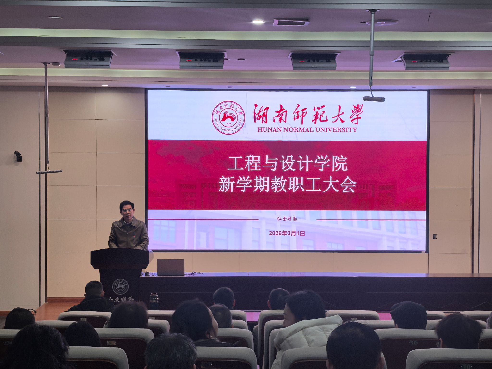 3月1日下午,yl6776永利集团在后栋报告厅召开新学期教职工大会,传达学校新学期工作会议精神,总结学院“十四五”期间成绩与挑战,部署新学期重点工作。会议由院党委副书记雷道金主持,全院教职工参加。
