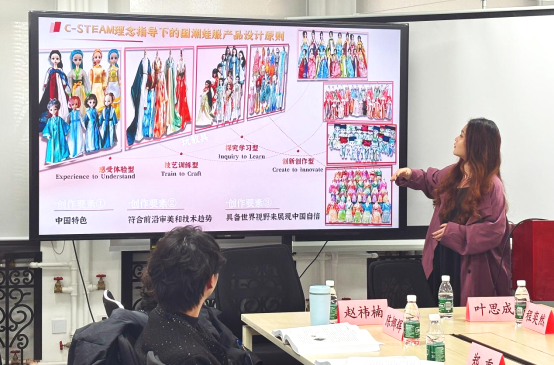 (通讯员:魏志芸)11月16日,2024清华文创论坛以“新质生产力与当代文创发展”为主题在清华大学成功举办。服装系邓美珍老师指导的研究生刘依梦、魏志芸受邀在“新质生产力与传统文化活化”在第三分论坛进行研究成果发表。其研究围绕传统文化在新质生产力背景下的保护、传承与创新,从实践层面结合C-STEAM教育理念,探讨国潮娃服文创产品的设计流程与方法论构建,研发具有教育性和趣味性的文创产品,促进中国娃服市场细分化发展,进一步传递中华优秀传统文化和激发本土文化创新活力。