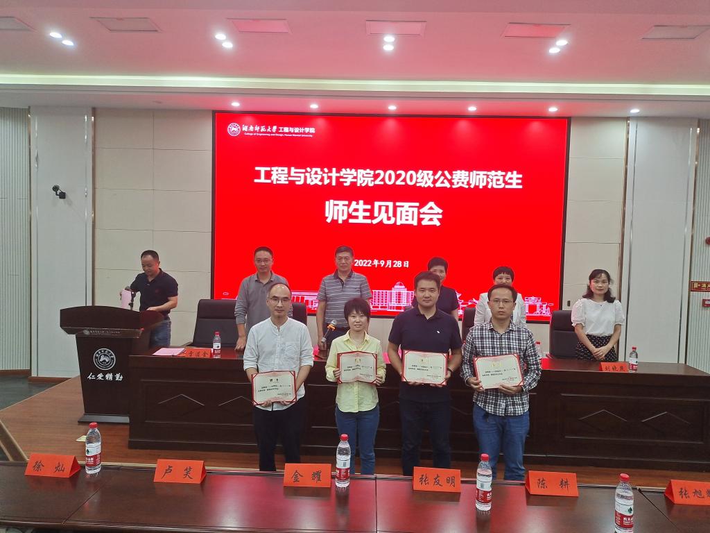 学院班子成员为2020级公费定向师范生班导师颁发聘书。学生代表2020级应用电子技术专业罗佳伟,老生代表2019级服装与服饰设计专业陈海燕先后发言。