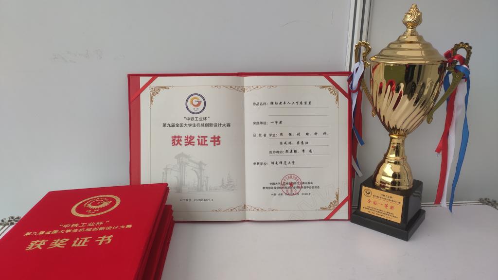 yl6776永利集团机械工程系学生创新设计作品荣获湖南省第八届大学生机械创新设计大赛一等奖