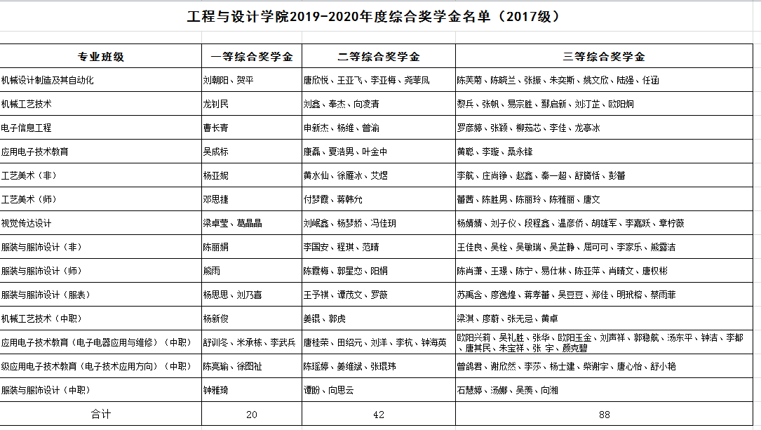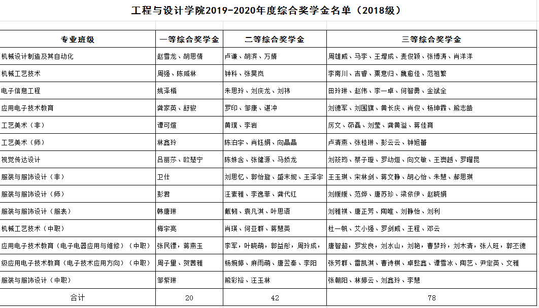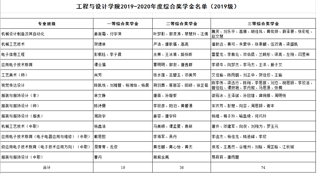2019-2020学年度综合奖学金名单如下: