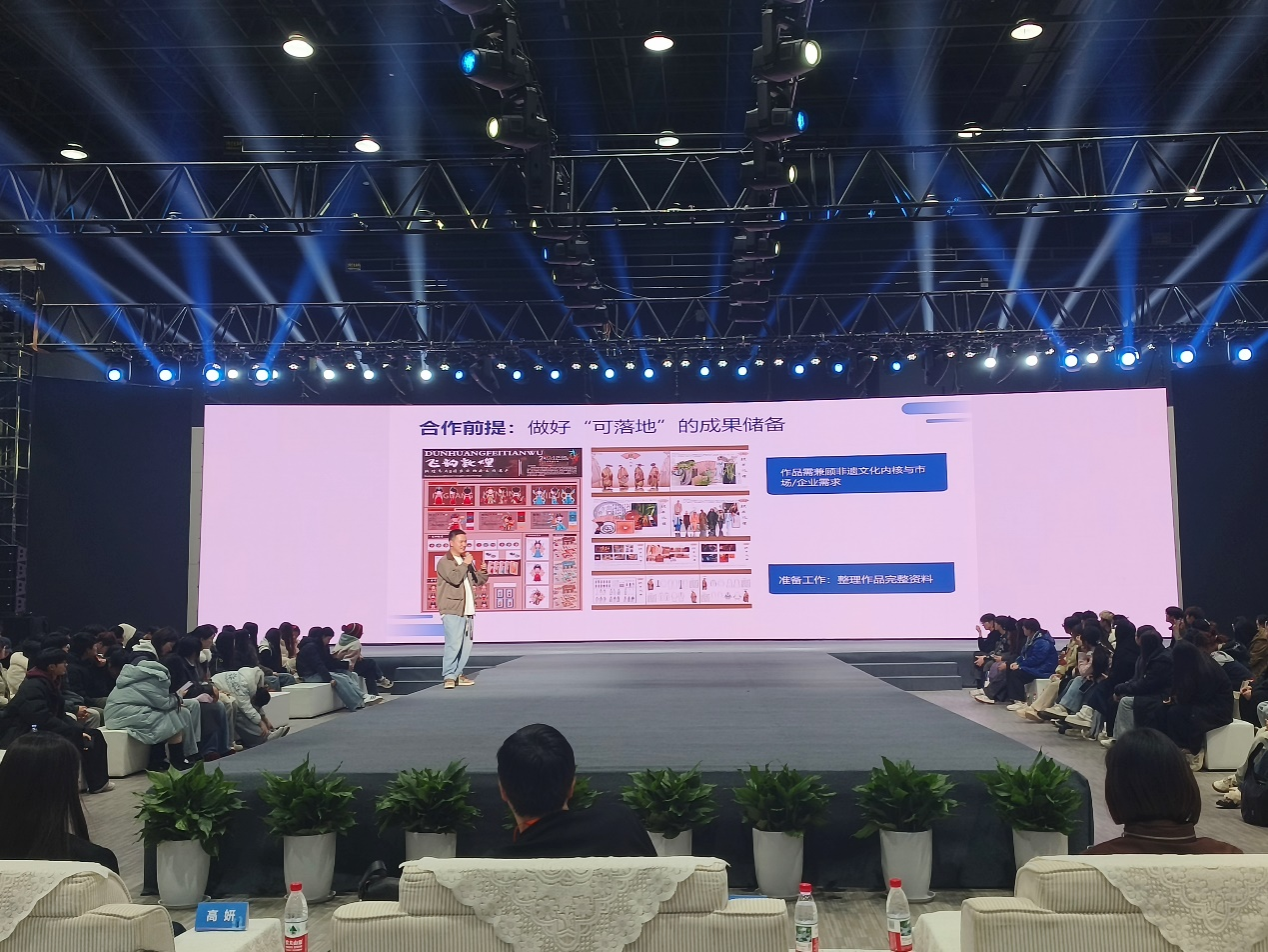 分享会有来自清华大学、江南大学、北京服装学院等教授以及多位中国十佳设计师开展沙龙座谈。张吉龙作为首位在校大学生创新创业代表,聚焦“非遗+双创”主题,介绍“课程作品—非遗融合—赛事转化—企业合作—产品落地”转化路径,对国家级大创项目《童创华裳》作了经验分享。